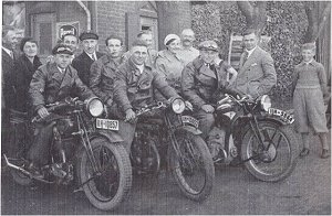 Der Motorrad-Club Rehau auf einer Ausfahrt vor dem Wirtshaus in Schönlind 1929