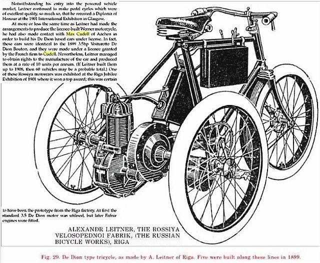 Leitner in Riga (Rossiya Velosopednoi Fabrik) fertigte mit großem Erfolg Cudell-Fahrzeuge in Lizenz (siehe Maurice A. Kelly "Russian Motor Vehicles: The Czarist Period 1784 to 1917").