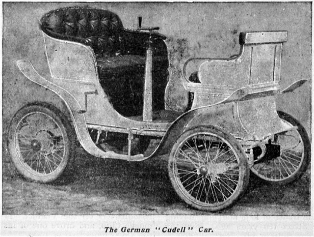 | Aus einem zeitgenössischen englischen Motor-Magazin: "The German Cudell". Ein Beweis dafür, wie locker Max Cudell die Grenzen des Lizenzgebietes überschritt. |