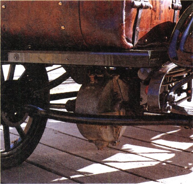 | Das Foto zeigt den Fortschritt beim Bau der Fahrwerke: die De-Dion-Achse ist gegenüber dem Chassis gefedert, das Differential ist - vor den Straßen-Erschütterungen geschützt - am Fahrzeug-Chassis befestigt. Gleichzeitig werden die ungefederten Massen der Achse drastisch reduziert. |