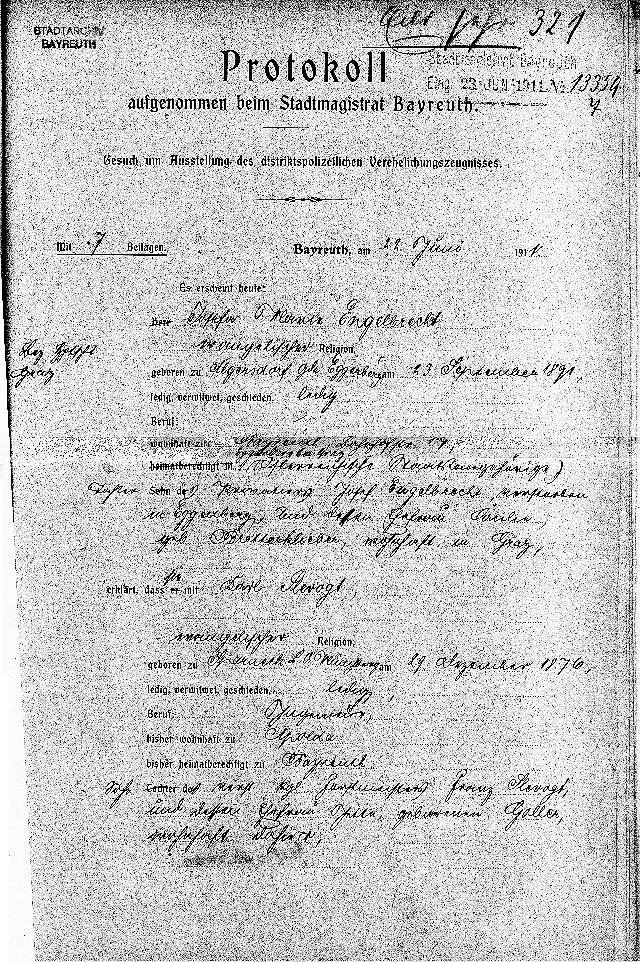 Die Familie Engelbrecht aus Graz. Der Vater von Maria Josepha Engelbrecht (Josepha => Fini) verstarb bereits 1903, Die Mutter hat etliche Jahre in Apolda gelebt (belegbar zum 16.06.1924) und wurde auch dort beigesetzt.