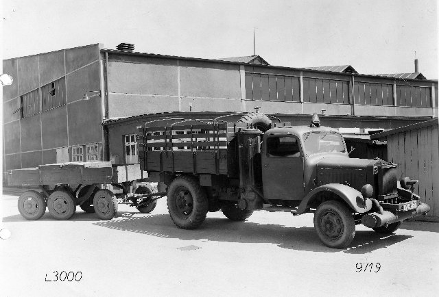 Der L 3000 mit serienmäßige Dieselmotor OM 65/4 hateine Imbert-Holzvergaseranlage montiert (ich wußte gar nicht, daß das beim Diesel auch geht), die Leistungseinbuße gegenüber einem herkömmlich betriebenen Dieselmotors beträgt gute 20 Prozent. A.Hitler fordert die Rückrüstung auf Diesel-Betrieb.