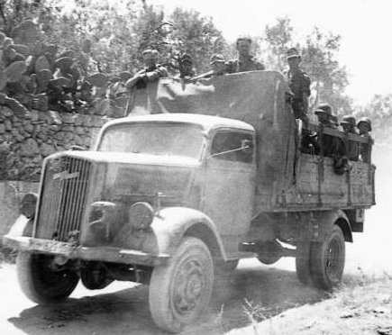 Der Mercedes-Benz L 3000 S wurde von 1940 bis 1942 und in der Allradversion noch bis 1943 hergestellt. Dieser Lkw war durch den Dieselmotor wirtschaftlicher als andere Konkurrenzfahrzeuge, doch die Geländegängigkeit war unzureichend. |